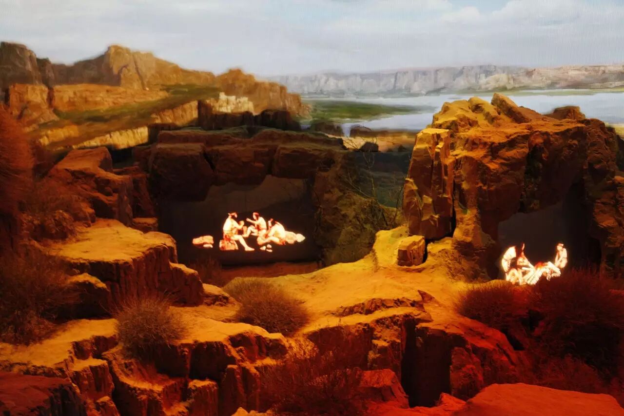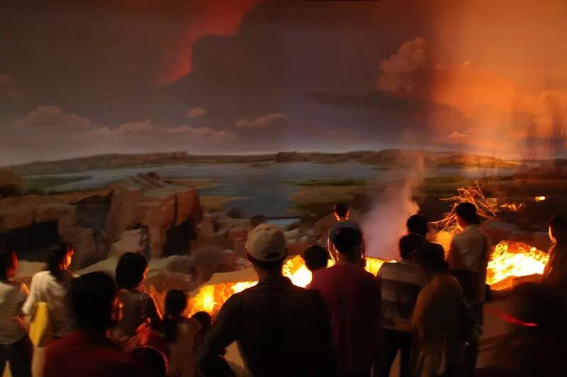 270度超大型半景画、实景、幻影成像的展示形式,结合了世界最先进的声、光、电、可调式地震平台等技术,为您再现三万年前远古人类其乐融融渔猎生活和打制石器的生产场景以及暴雨倾盆、洪水肆掠、山崩地裂等震撼的灾难场景。
